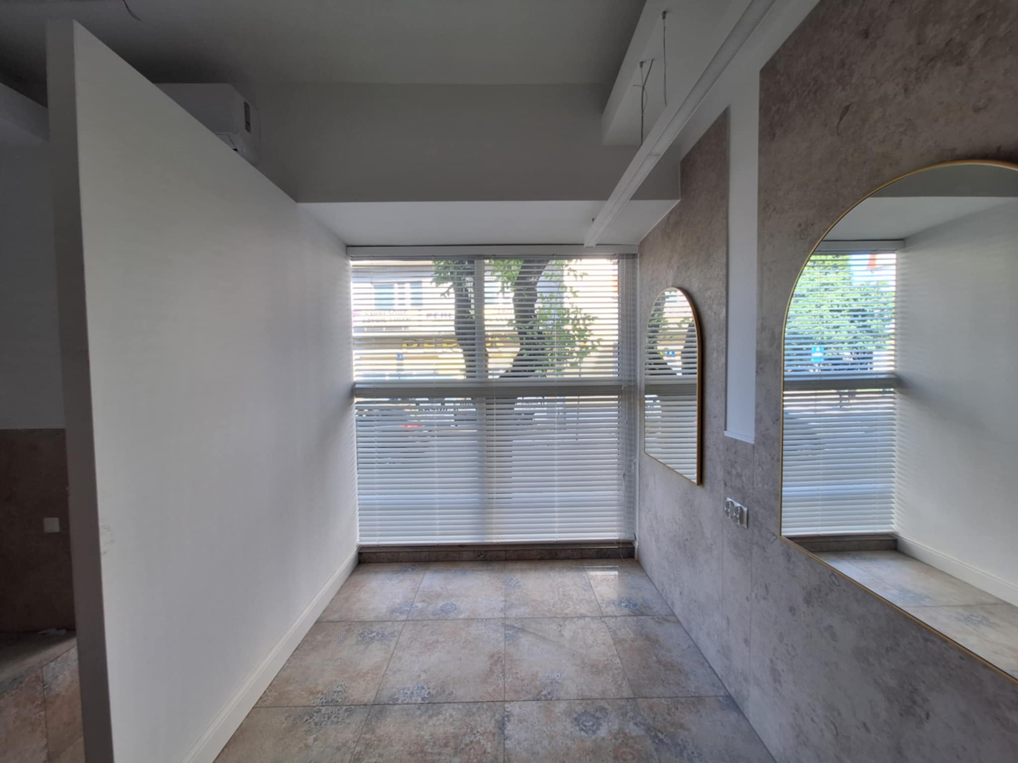 Montaż wewnętrznych żaluzji drewnianych w kolorze białym. W dużym stałym szkleniu szerokość lameli żaluzji to 5 cm i system montażu do sufitu, a w drzwiach wejściowych szerokość lameli 2,5 cm z montażem w listwach przyszybowych. ...