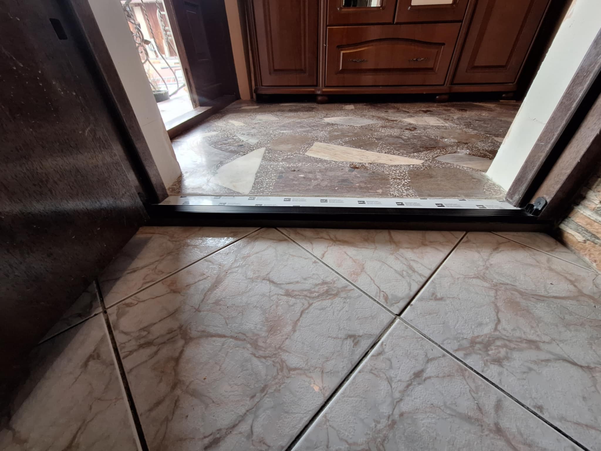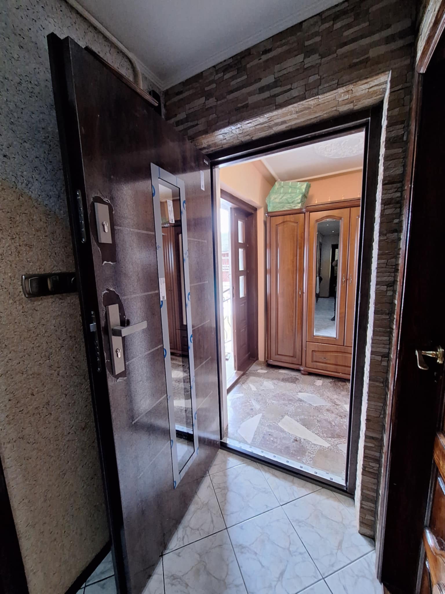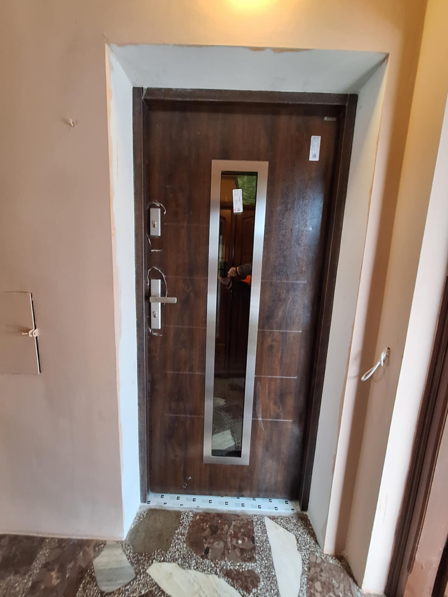 Drzwi Arktic 72 wzór F 61/56 w kolorze orzech ciemny o grubości skrzydła 72 mm – wypełnienie pianą poliuretanową. Ościeżnica z blachy stalowej z wypełnieniem drewnianym oraz aluminiowym progiem. Przeszklenie w drzwiach szyba reflex brąz z ramką oraz okuciami w kolorze srebrnym. Zamek główny, jak i dodatkowy 3 – bolcowy.