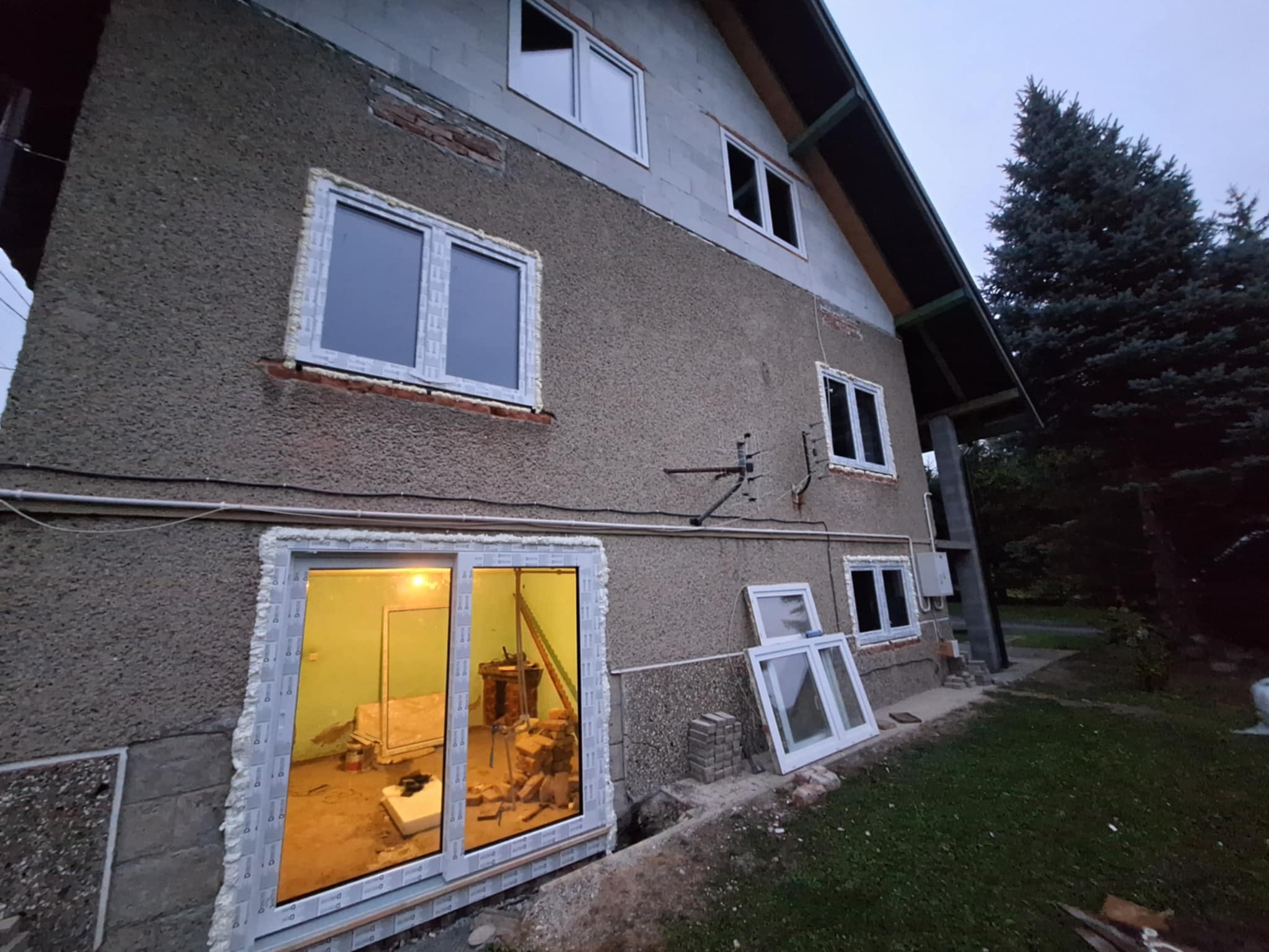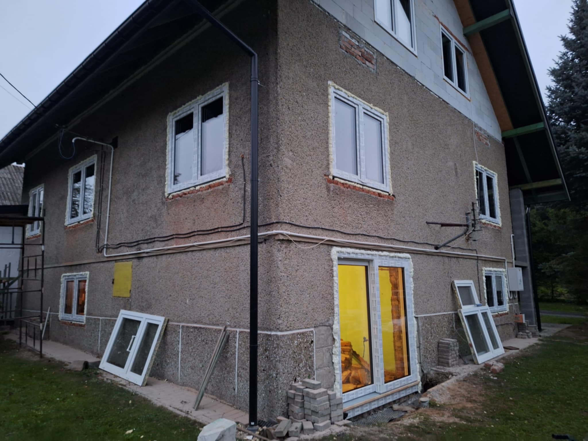 Wymiana okien w ramach programu „czyste powietrze”. Okna Iglo Energy Classic na profilu 7 – komorowym o głębokości zabudowy 82mm. System wyposażony w potrójne uszczelnienie: zewnętrzne i wewnętrzne z EPDM oraz centralne ze spienionego EPDM. Okna w kolorze obustronnym białym. Pakiet 3 – szybowy z czarną ciepłą ramką międzyszybową. W oknach zastosowano kwadratowe klamki Dublin.