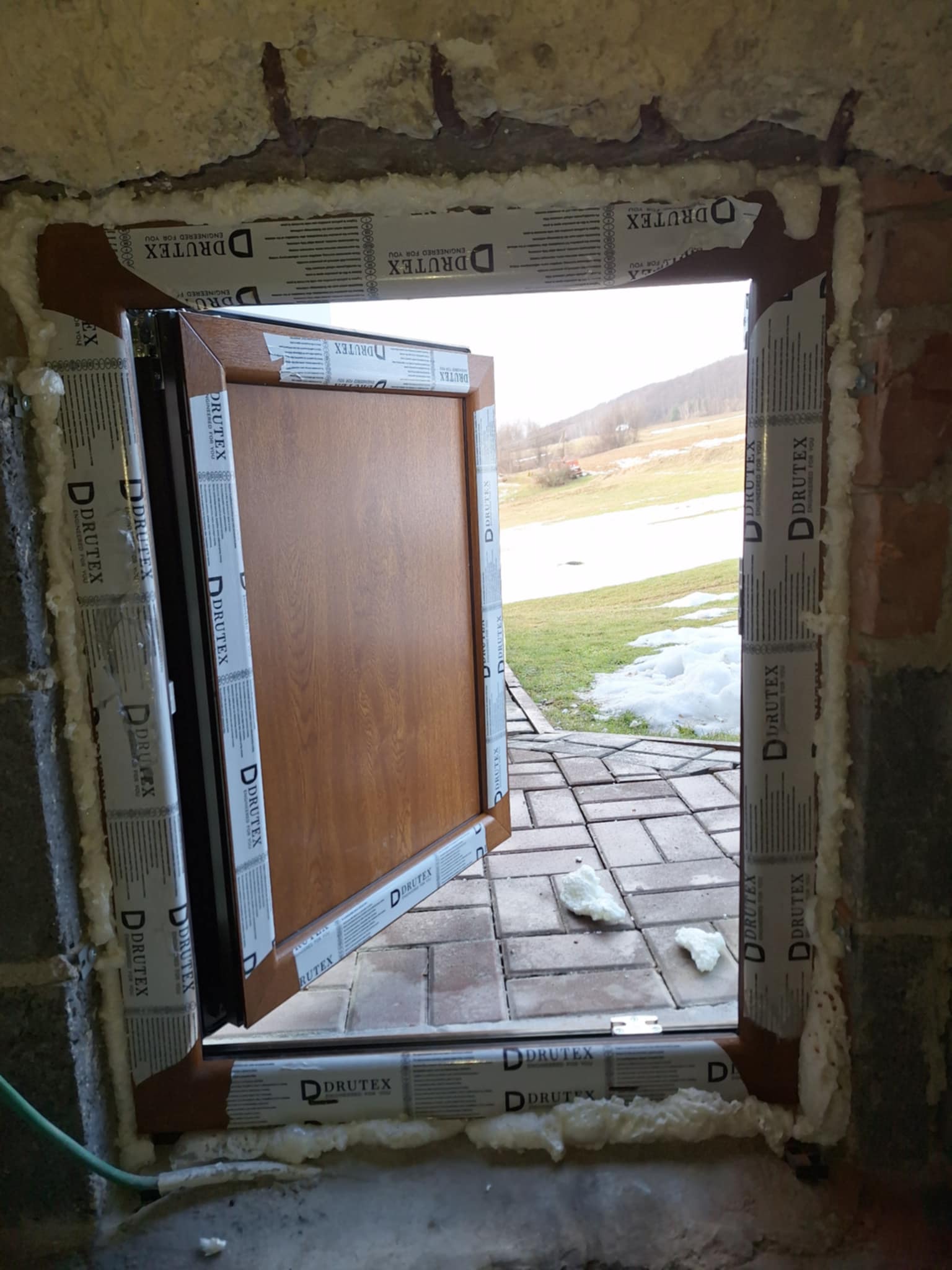 Montaż drzwi na profilu okiennym do pomieszczenia gospodarczego firmy Drutex 10 lutego 2026 Drzwi Okno Iglo 5 Clasic na profilu 5 – komorowym, kolor obustronnie złoty dąb wypełnione płytą PCV z klamka z kluczykiem. Poprzedni wpis Demontaż i montaż wraz z obróbką szpalet nowych drzwi firmy Martom Następny wpis Demontaż starych drzwi i powiększanie otworów na wysokość
